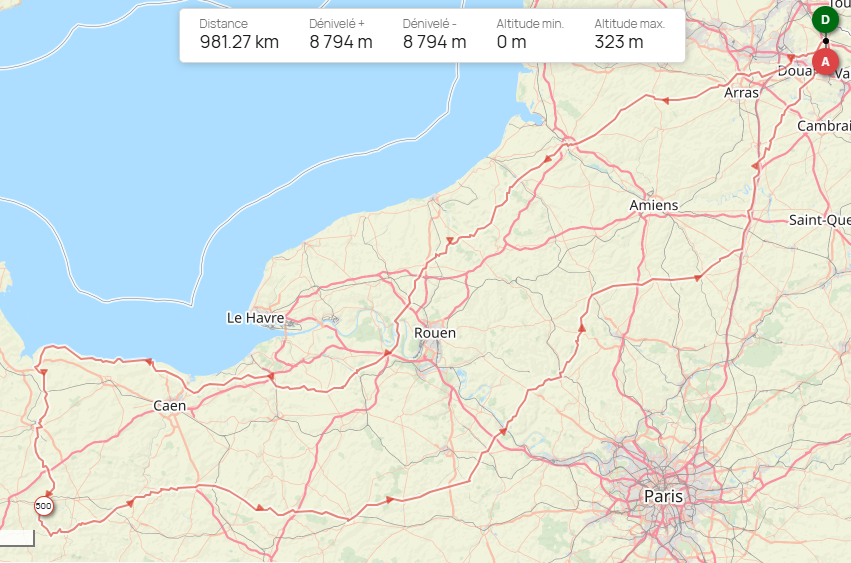Vous traverserez des paysages vert et jaune à cette période du coté des champs, la forêt d’eu sera traversée par deux fois la somme vous apportera les paysages d’eaux, des maisons à colombages seront présent sur le trajet , bref une multitude de paysages et d’architectures qui vous dépayseront.