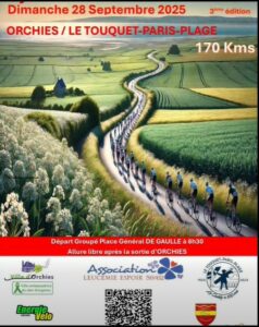 | 39 | 22 | 23 | 24 | 25Jeudi 25 SEPTJeudi 25 SEPTHeure/min: 13h30 82 km ou 65 km en coupant dans la forêt de Marchiennes direction Beuvry puis Orchies LOCAL CLUB | 26 | 27 | 28Dimanche 28 sept 70kmDimanche 28 sept 70kmHeure/min: 8h00 Le circuit de la chicorée classic 70km Dimanche 28 sept 100KmDimanche 28 sept 100KmHeure/min: 8h00 Le circuit de la chicorée classic 2025 EVT-20250928/1 Leucémie-Espoir 59 Orchies - Le TouquetEVT-20250928/1 Leucémie-Espoir 59 Orchies - Le TouquetHeure/min: 8h30 CYCLO LEUCÉMIE ESPOIR 59 62 Départ officiel groupé place d’Orchies à 8h30 Direction Le Touquet-Paris-Plage place Quentovic