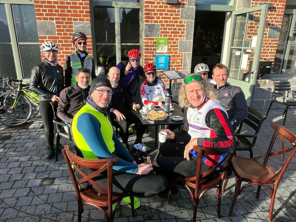 Nous sommes neuf à nous retrouver dans le confortable local du CC Orchies dont la porte a été ouverte par l’ancien président Christian Théron. Le café est préparé par son épouse Claudie. Ce couple de bénévoles est présent au départ de tous les BRM organisés par le club depuis plus de 20 ans. Merci à eux pour leur dévouement ! Le Président Claude Bauduin est également présent.