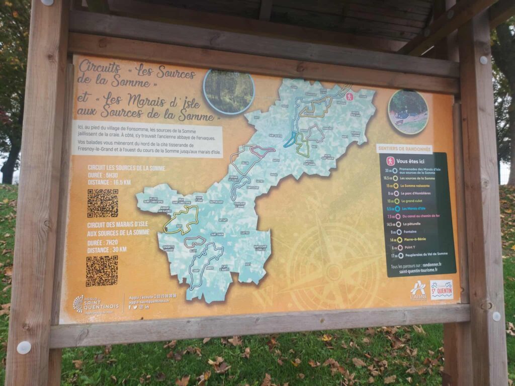 A Fonsomme (km 99) nous sommes à la source, celle de la Somme évidemment, à cet endroit, il s’agit seulement d’un petit ruisseau que nous suivrons durant quelques km.