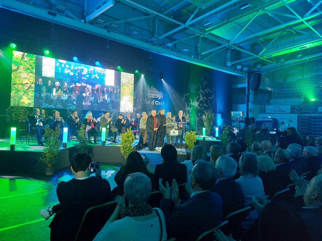 Une première pour la traditionnelle cérémonie des voeux de la municipalité. Devant 1500 personnes M Ludovic Rohart Maire d’Orchies n’a pas remis la médaille de la ville à une personne méritante dans la vie locale orchésienne mais à une famille complète ! Josiane, Gustave et David ont été appelés sur scène par M le Maire pour leur engagement dans la section course depuis 26 ans. Une juste reconnaissance de 26 ans de dévouement, de bénévolat, de beaux moments de convivialité, de bonheur. Une reconnaissance également de notre club dans la vie associative orchésienne.